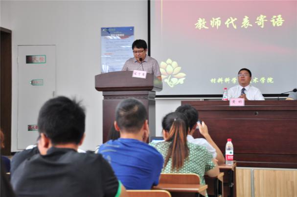 紧接着,跟同学们最紧密的导师代表,材料科学与工程系副主任顾冬冬教授,以自己亲身经历的小故事告诫同学们在大学生活中要珍惜时间,勤奋学习,树立更高的人生目标,有一个好的规划,为自己的大学抒写绚丽的色彩。