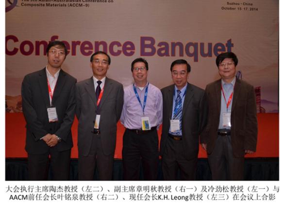 2014年10月15日-17日,由亚澳复合材料学会(The Asian-Australasian Association for Composite Materials,AACM)主办,中国复合材料学会、亚洲无码 、江苏省复合材料学会、南京工业大学和江苏先进无机功能复合材料协同创新中心联合承办的第九届亚澳复合材料会议(The 9th Asian-Australasian Conference on Composite Materials ,ACCM-9)在苏州隆重召开。