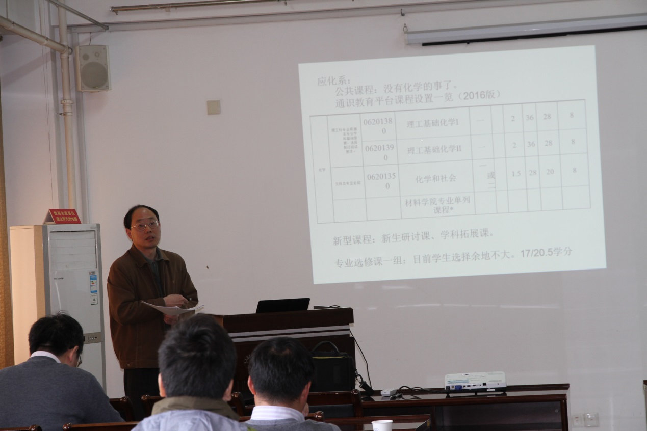 2016年4月1日,应化系召开“十三五”本科专业建设规划及2016年本科教学建设工作研讨会,教学主任祁欣在认真学习消化学校文件精神的基础上,结合教育部“本科教学审核评估”工作,提出了“一个抓手、一个主体、二个基本点、五个方面”的建设思路与理念。一个抓手是指“实施‘品牌专业建设工程’”;一个主体指“学生在教学中的主体地位”;二个基本点为“学时要缩短、教学要改革”;五个方面包括“考试方法、教学模式、创新培育、国际化培养、管理方面”。