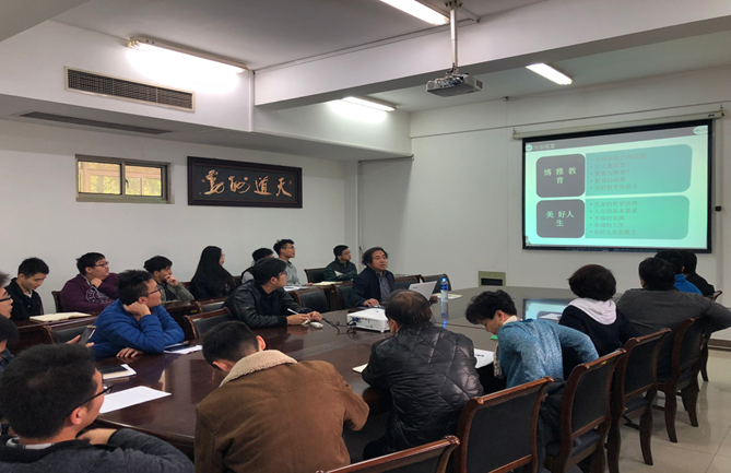 报告会上,王铁山教授以博雅教育的理念为出发点,首先引出疑问“什么是教育,教育和教学的差别?”,从教师如何教、如何育两个方面阐述了一个优秀的大学老师应该具备的特征,其中穿插了很多哲理故事和物理学家的名言,将难以理解的人生问题用浅显的话语阐述,借助大家熟知的物理学概念、原理、思维方法去审视社会、思考问题、指导人生,通过对生命的人哲学诠释,人的基本需求、幸福的来源、幸福的人生的介绍,引入感性素质的概念,引起师生的强烈共鸣,还向大家介绍了自己的幸福公式,自己的人生由自己做主,表示“人文构筑灵魂,科技促进发展,艺术提升品位,文化丰富生活。”