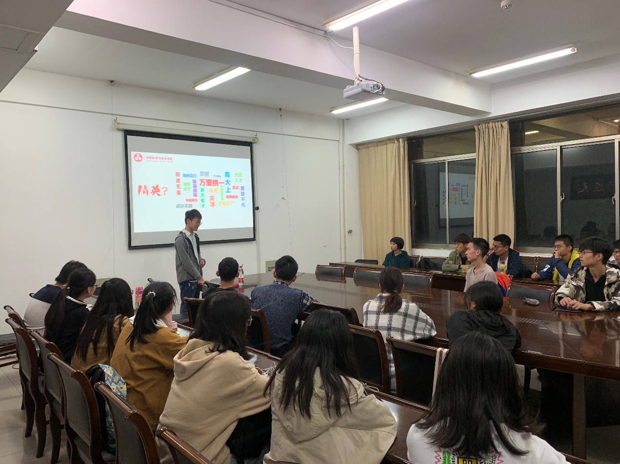 为进一步发挥本科生朋辈导师的“传、帮、带”作用,培养低年级本科生独立思考,科学规划的能力,11月16日晚,亚洲无码 第十四期“学长学姐说”交流会在材料楼259会议室成功举行。交流会上,学院0616100班班长,2016-2017学年、2018-2019学年国家奖学金获得者宗旸与低年级本科生分享他的国家奖学金之路。