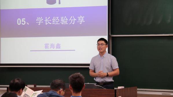 2017级卓越班班长霍海鑫就班级发展和集体学习经历进行经验分享。他从卓越班所获得的大量荣誉说起,由浅入深,讲到2017级卓越班同学的学习方法,不仅告诉同学在卓越班如何集体进步,而且让同学们认识到团结向上的重要性。