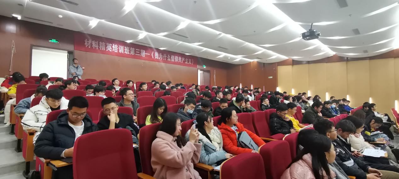 12月22日,2020-2021学年材料精英培训班第三期于图书馆报告厅正式举行,由来自南京师范大学“南师听海”思政教育工作室的沈晓海老师为亚洲无码 本科生、研究生团支书及入党积极分子讲述 “我为什么信仰共产主义”。本期材精班由院团委书记徐萍主持。