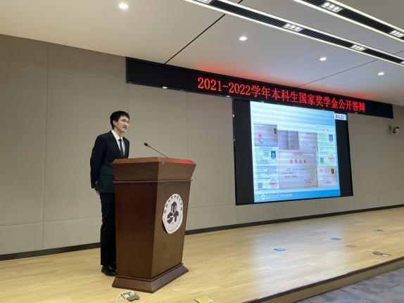 经前期学生自主申报、学院资格审核,共有来自三个年级四个专业共21名同学参加本次答辩。来自大四年级的张安静同学始终将笃学不辍作为自己的大学的首要任务,连续四年绩点位列专业第一,并取得了多项竞赛奖项;大三年级的张中阳同学以青春为笔,在人生的画卷上书写着“担当”二字;大三年级的卫斌同学,在学习之余更是在话剧、德语、合唱等领域全面发展。最后共产生9位国家奖学金候选人。