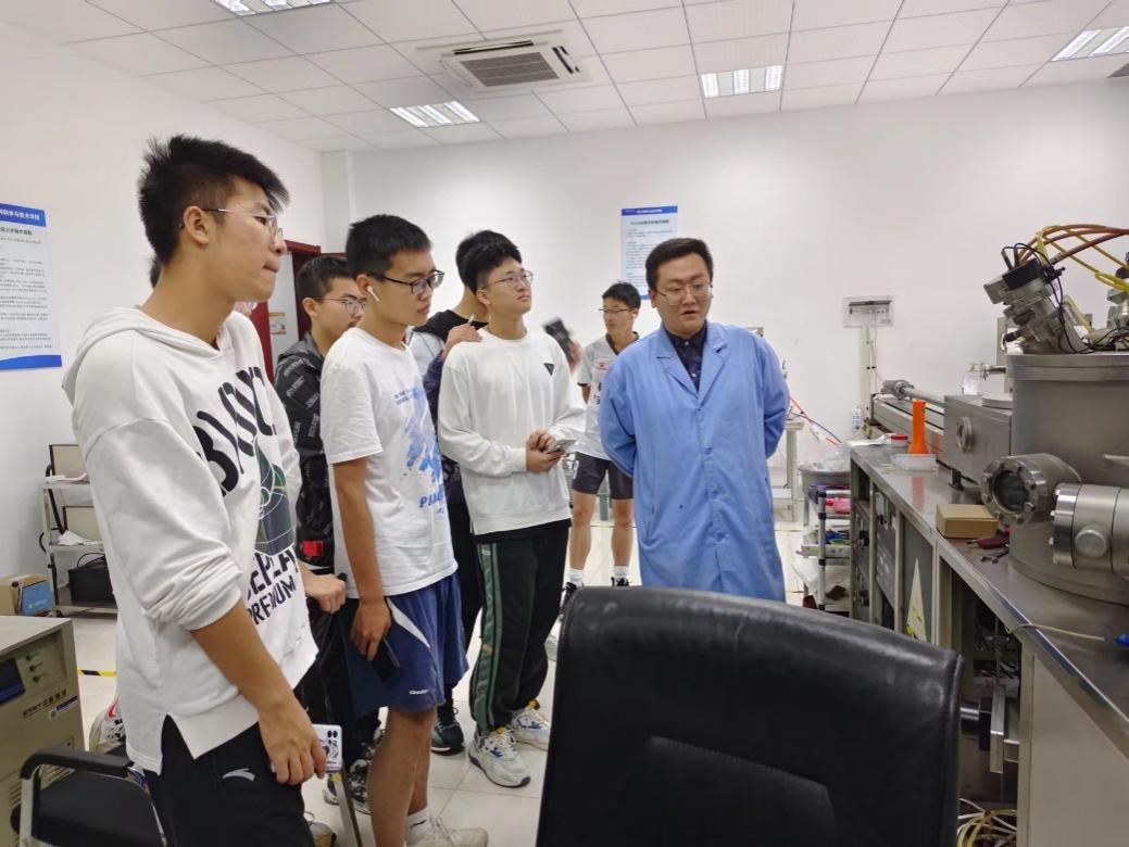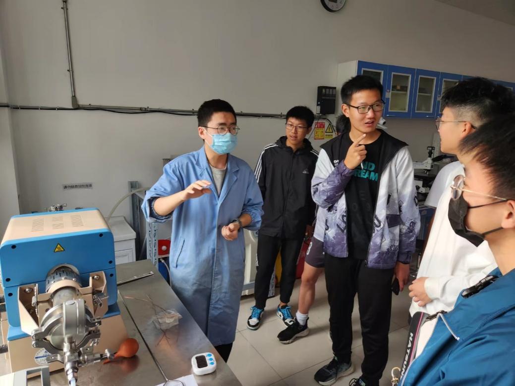 在马骏和王运龙老师的软物质制备与表征实验室和物质分析与性能测试实验室,同学们观看了老师对精密仪器的演示,对新物质制备与分析进一步增加了解。