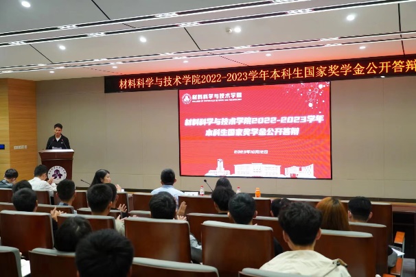 为充分发挥榜样育人的作用,激励更多同学见贤思齐、矢志奋斗,10月12日,亚洲无码 2022-2023学年本科生国家奖学金公开答辩在东区材料楼B501报告厅召开,学院党委副书记庄晓舒、材料加工工程系系主任林开杰、核科学与技术系系主任刘云鹏、应用化学系系副主任刘初阳、材料科学系系副主任丁兵和学生代表共同担任评委。100余名2023级本科生到场学习观摩。