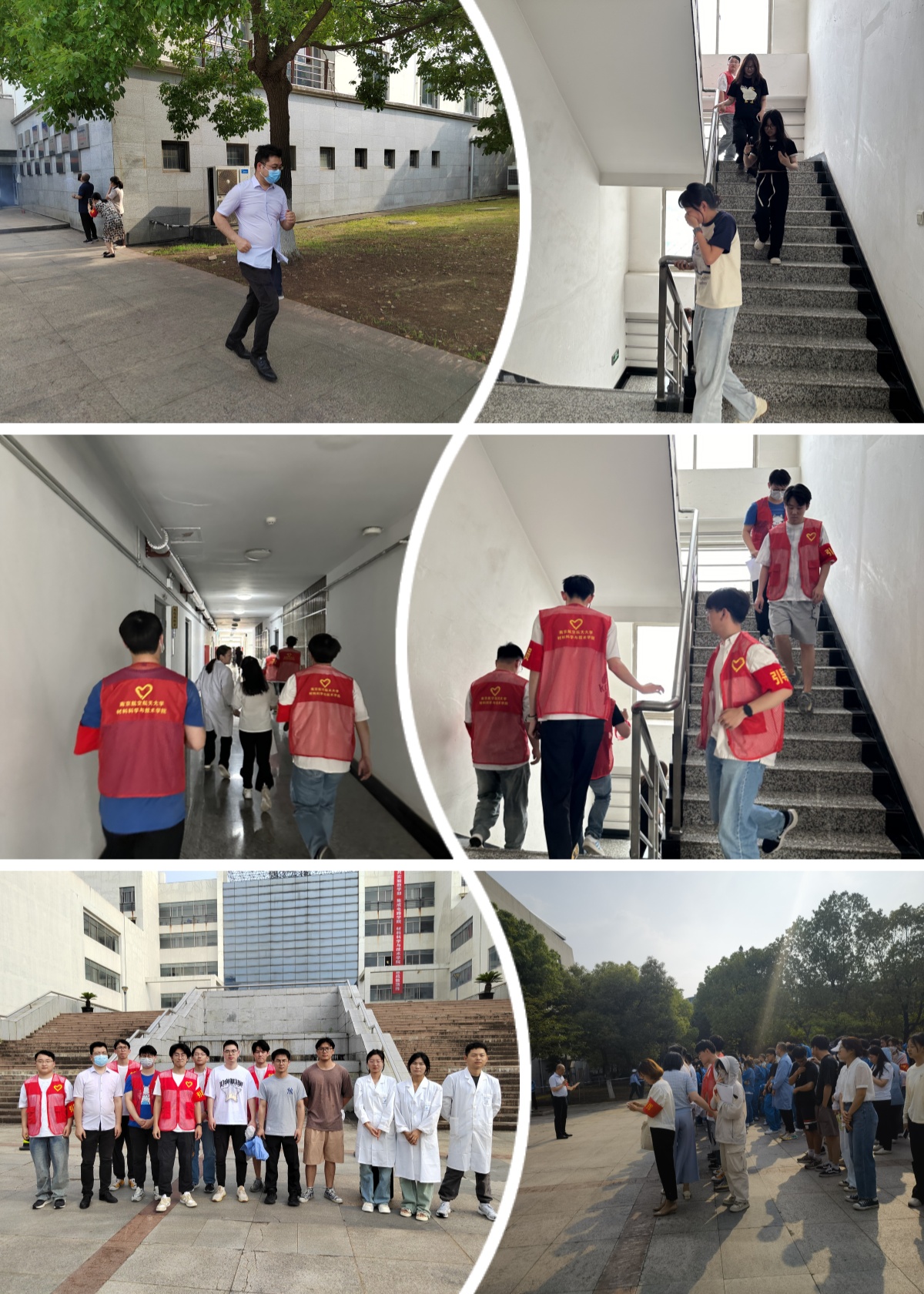 演练开始前,校保卫处工作人员向参加演练的志愿者师生详细解读了应急疏散演练方案,讲解了应急疏散常识,介绍了演练活动的流程及注意事项。下午4点,随着急促的警报声响起和火灾烟雾生起,本次演练活动正式开始,全体师生积极响应,担当各楼层疏导的学院安全吹哨人沉着冷静、迅速有序撤离地指挥各实验室师学用毛巾、湿纸巾等捂住口鼻,弯腰有序撤离本实验室,到达安全地点后,负责老师立即进行了人数清点,并将结果及时上报给总指挥,以确保每一名师生都安全撤离,无一遗漏。整个疏散过程配合默契,组织有条不紊,人人各尽其责。