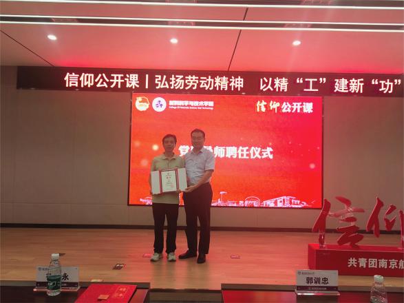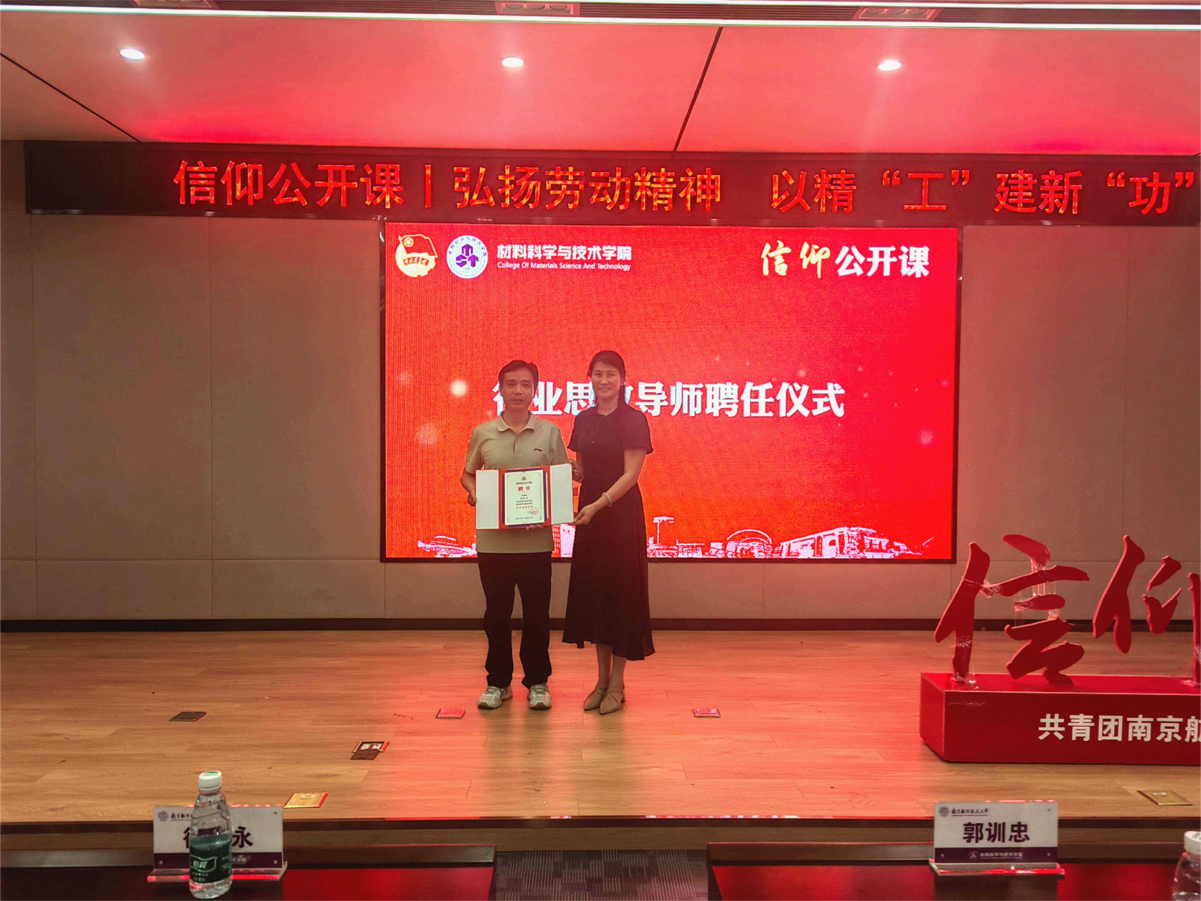 徐树永长期扎根兵器制造一线,肩负为国铸重器的使命任务,心系南航发展和青年学生的成长成才。公开课上,院党委副书记庄晓舒和副院长郭训忠分别为徐树永颁发“亚洲无码 行业思政导师”“柔性成形技术及装备团队纵向党支部党建导师”聘书。