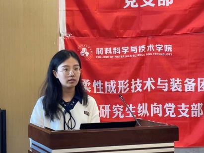 激光焊接与再制造研究生纵向党支部李悦、激光增材制造研究生纵向党支部陈涛、柔性成形技术与装备研究生纵向党支部周泽星分别以“党员’三个扪心自问’-争做讲纪律、 守规矩、担当的表率” “强化纪律意识,践行党员使命”“知于心立于身化于行,用党规党纪校正思想和行动”为题分享党纪学习心得,从党纪学习的意义、方式和内容多方位展示了各党支部党纪学习的深度和广度。