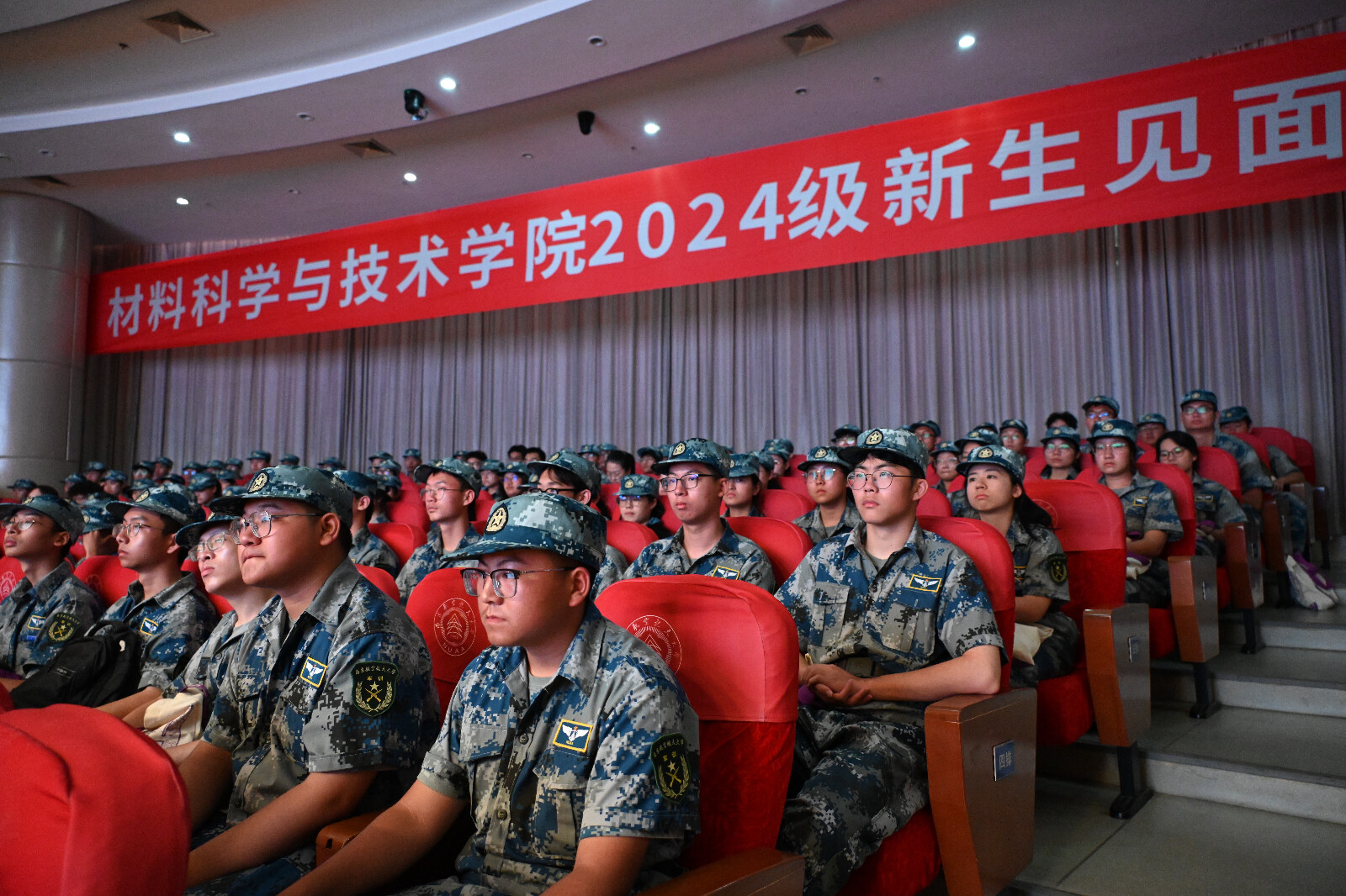 院党委书记石勇致欢迎辞,并寄语新生三点希望。一是要砥砺报国之志,成为可堪大任的三航之材;二是要修炼钻研态度,成为踏实肯干的栋梁之材;三是要涵育进取情怀,成为奋勇攀登的报国之材。他希望同学们探索科学,求微知著,成长为一名有"材"有"料"的材院人!