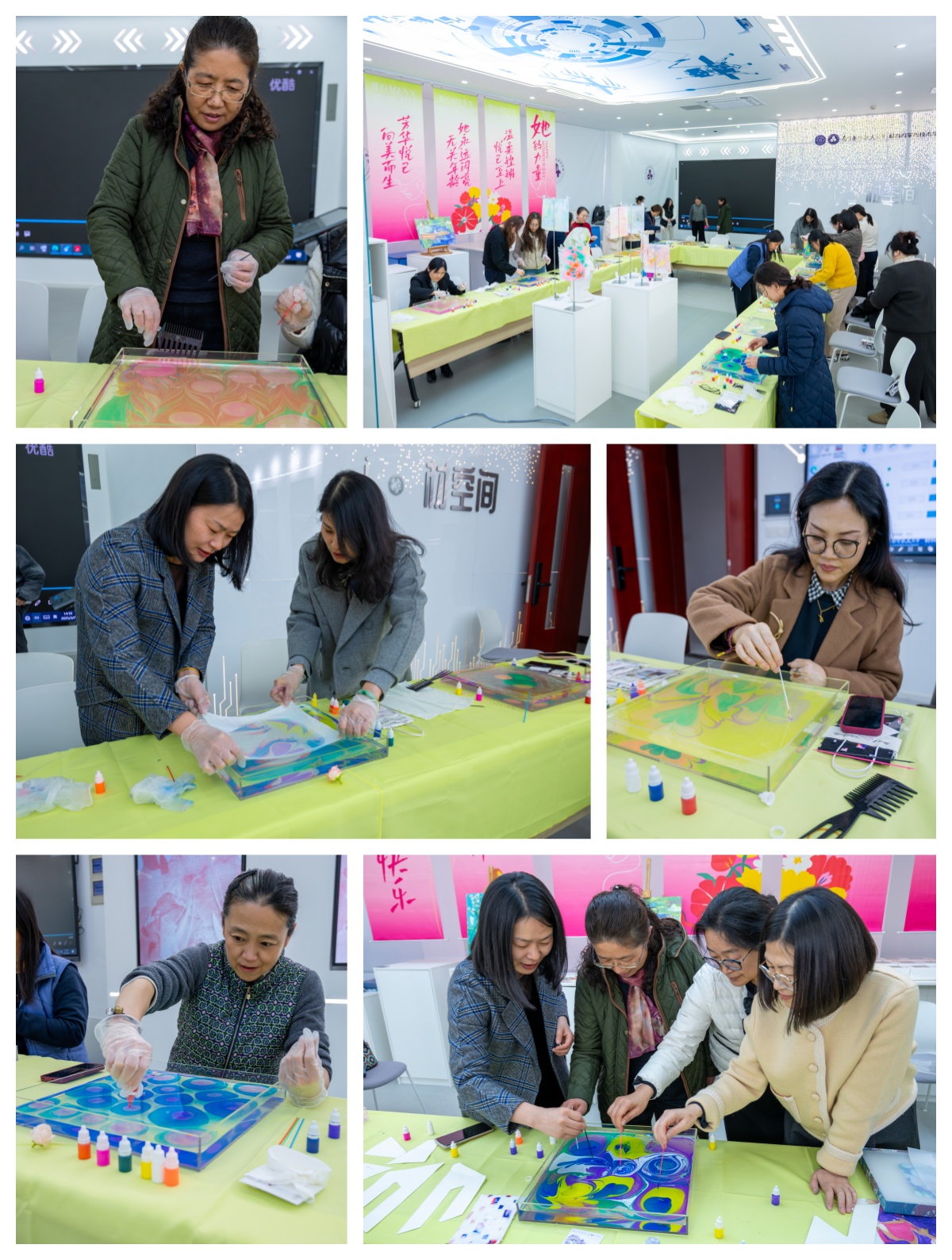 工会匠心独运地组织"水中生花,丝拓成画"非遗文化体验活动,女教职工在艺术创作中共赴春日之约,以别样风采展现新时代教育巾帼的智慧与担当。