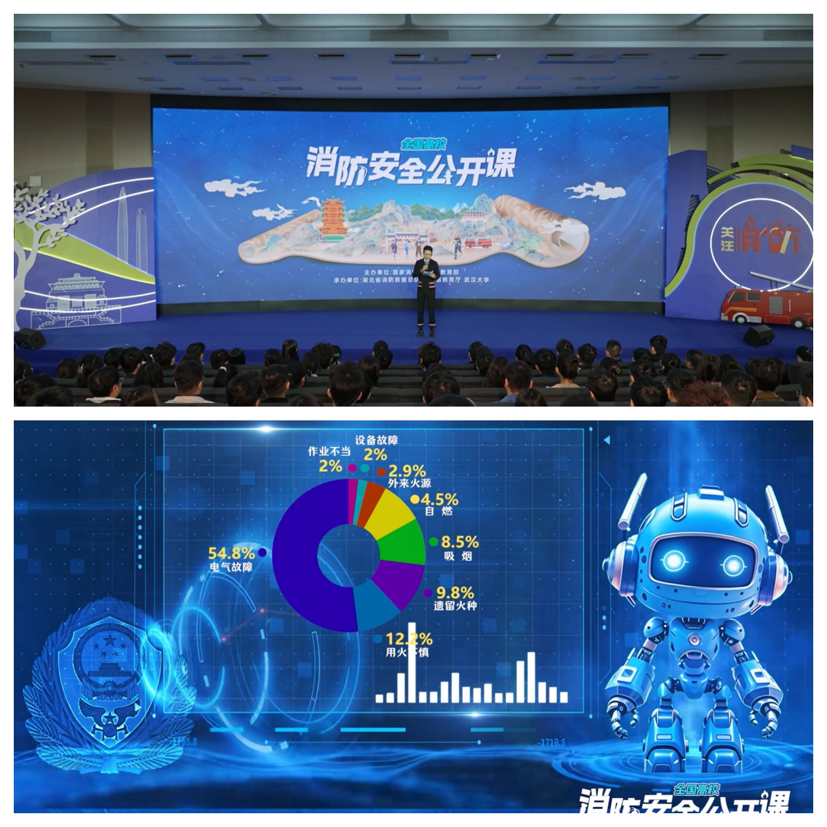 本次以武汉大学为主会场的公开课,创造性运用实景模拟、三维数字孪生、人机交互等前沿技术,构建起"场景浸润+智能交互"的教育新范式。课程中,虚拟教官“蓝博特”带领师生“云探访”宿舍火灾现场,通过3D动态演示直观揭示有毒烟气扩散路径及致命危害。人形机器人、智能机器狗等设备的亮相,更以趣味互动形式强化知识记忆,激发学生学习主动性。亚洲无码 师生纷纷表示:“数字化场景让书本上的平面知识变成了立体可感的生存技能,这种学习体验令人耳目难忘。”