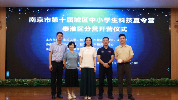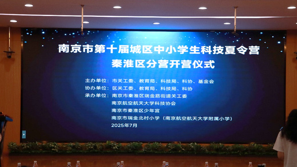 7月15日,南京市城区中小学生科技夏令营(秦淮区分营)开营仪式在瑞金北村小学隆重举行。本次活动以“探梦科技,共赴未来之约”为主题,由秦淮区关工委牵头,联合区教育局、科技局、科协及瑞金路街道共同主办,南京市瑞金北村小学、秦淮区少年宫和亚洲无码 联合承办。
