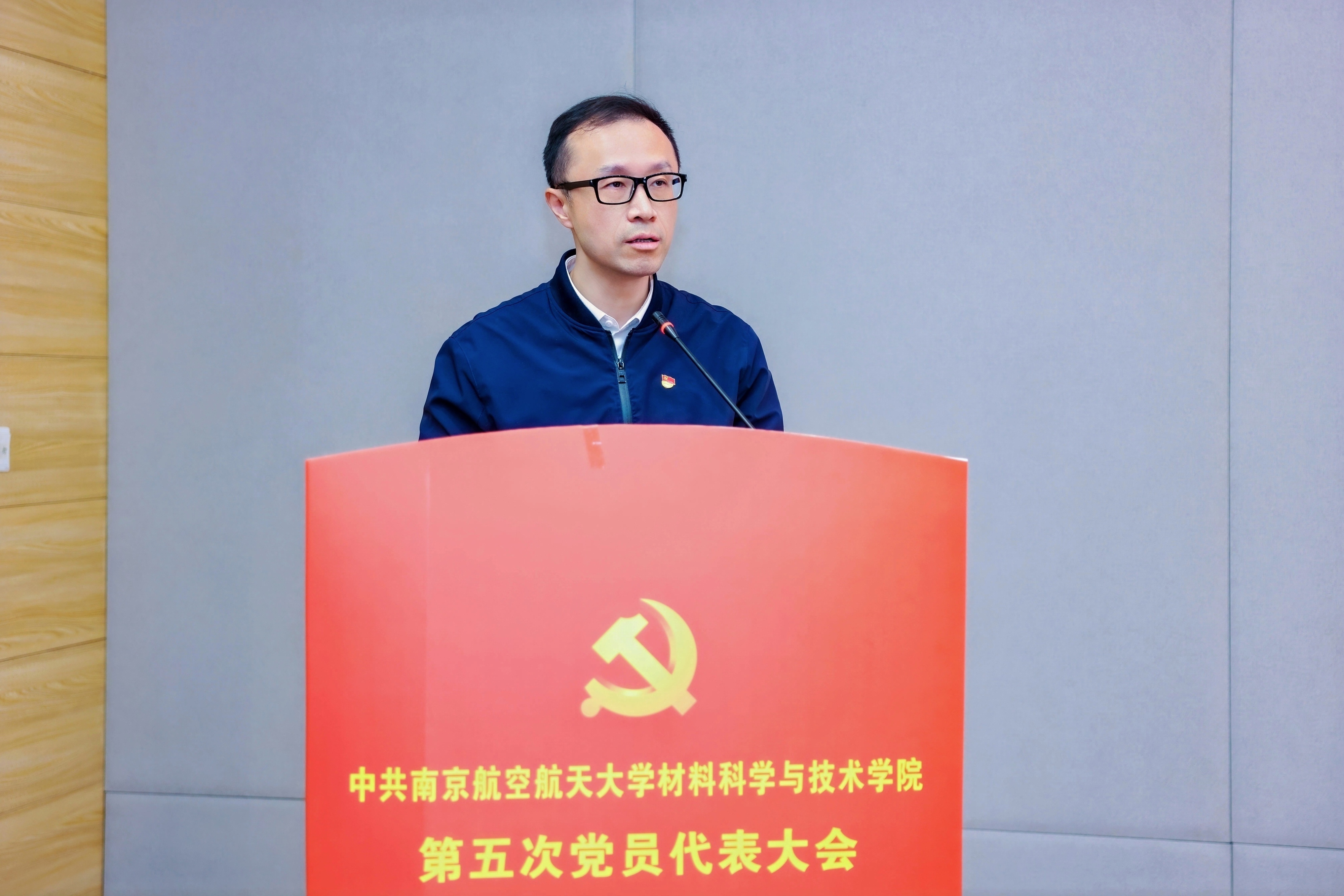 徐正扬代表学校党委向大会的召开表示热烈祝贺,对过去六年学院党委取得的成绩给予充分肯定。他希望学院党委以本次大会为新起点,深入学习贯彻习近平总书记致南航建校70周年重要勉励精神,在学校党委的坚强领导下,抢抓机遇、乘势而上,在支撑学校世界一流大学建设、服务国家重大战略需求的新征程上取得更高质量的发展。他同时对学院今后的工作提出三点希望:一是坚持党建领航,筑牢高质量发展坚实根基,在“把方向”上体现更高站位,在“强根基”上拿出更实举措,在“聚合力”上激发更强动能。二是瞄准重大需求,勇担材料强国时代使命,要有“三航急需”“国防急需”“时代急需”的响应度,强化顶层设计,优化学科布局,坚持“四个面向”,统筹前沿探索,在国家重大需求与关键技术突破中勇挑重担。三是抢抓发展机遇,创建人才荟萃一流学院,进一步提高拔尖创新人才培养质量,进一步加强师资队伍建设力度,进一步优化人才成长环境,为国家重大工程和产业发展提供人才支撑。